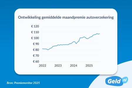 Geld.nl monitort de ontwikkeling van de premie voor de autoverzekering al jaren en signaleert een forse stijging sinds 2022. Toen lag de gemiddelde premie nog op € 81,61 per maand, inmiddels betaalt een autobezitter een gemiddelde maandpremie van € 107,28. “Voor het verzekeren van precies dezelfde auto ben je nu dus per jaar gemiddeld € 300 duurder uit dan vier jaar geleden”, vertelt Huibers.