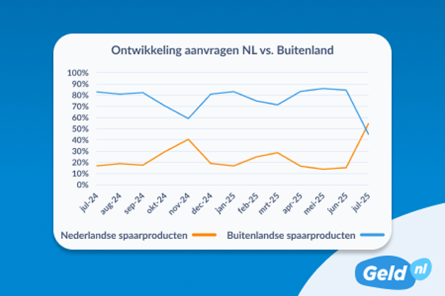 Dat de Nederlandse spaarproducten in opkomst zijn, blijkt ook uit cijfers van Geld.nl. “Kijken we naar de verhouding tussen Nederlandse spaarproducten en spaarproducten uit de rest van Europa, dan zien we dat consumenten sinds juli 2025 voor het eerst meer Nederlandse spaarproducten dan buitenlandse spaarproducten aanvragen,” aldus De Vries.