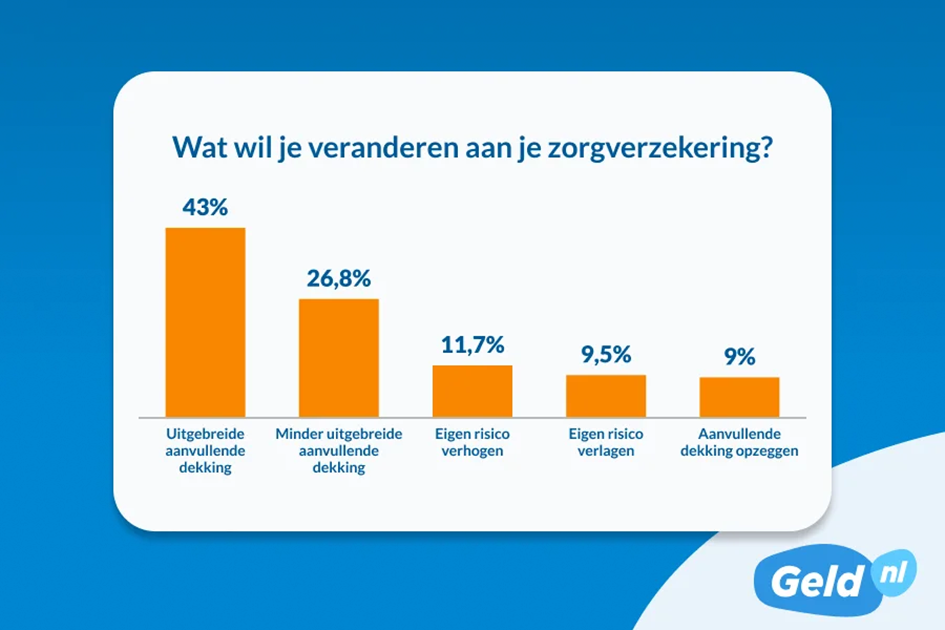 In het onderzoek geeft meer dan de helft van de consumenten (52,8%) aan iets te willen veranderen aan de eigen zorgverzekering. Van de verzekerden die iets gaan veranderen, wil 43% de aanvullende dekking uitbreiden. Dit percentage is al een aantal jaren constant.